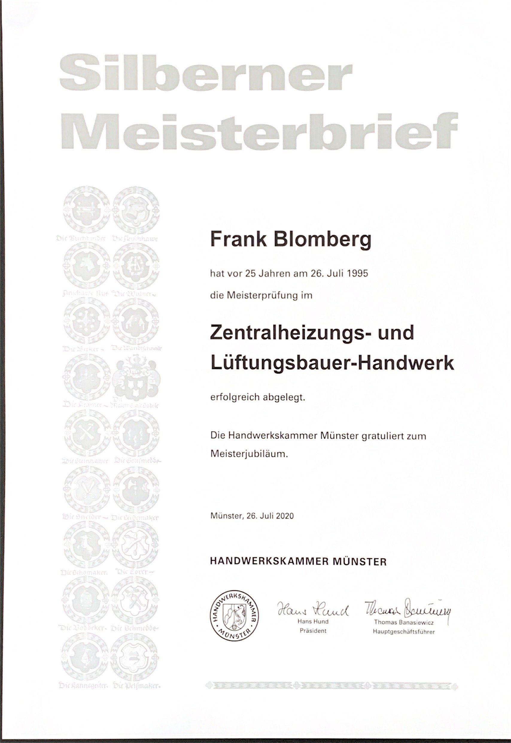 Silberner Meisterbrief für Frank Blomberg
